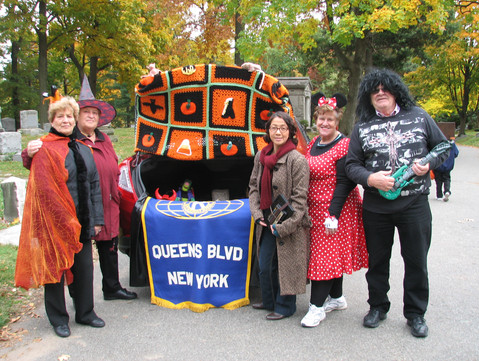 The Kwanis of Queens Blvd had a wonderful car and came with a car load of people. The Brothers from the Heritage Lodge came and had a wonderful time and brought extra candy as well. The Girl Scouts from Jackson Heights came and also brought in candy. Ludger Balan of the 26th USCT came as well and made the fatal mistake of telling kids to help themselves and they wiped him out in a feeding frenzy! LOL! Members from Alex's law firm came in two cars and were a great help! Christine Bauman and her sister came with their car and loved it. Their parents and grandparents are buried at Maple Grove and their mother so loved Halloween. They all had a great time.